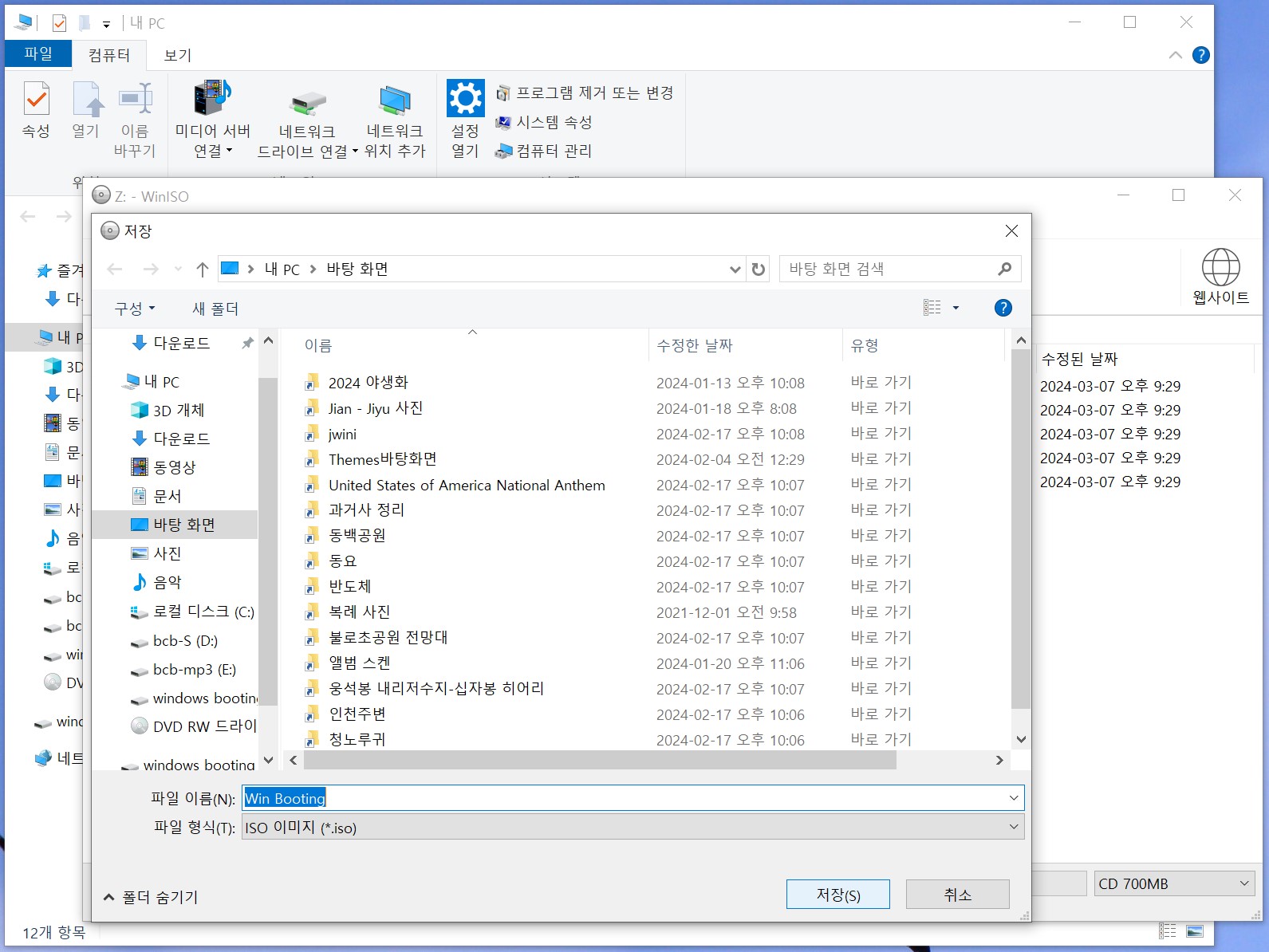 Windows 시스템 복구 디스크 이미지(Win 11 Booting.iso)를 다운 받아 사용할 수 있도록 올려 놀았습니다.