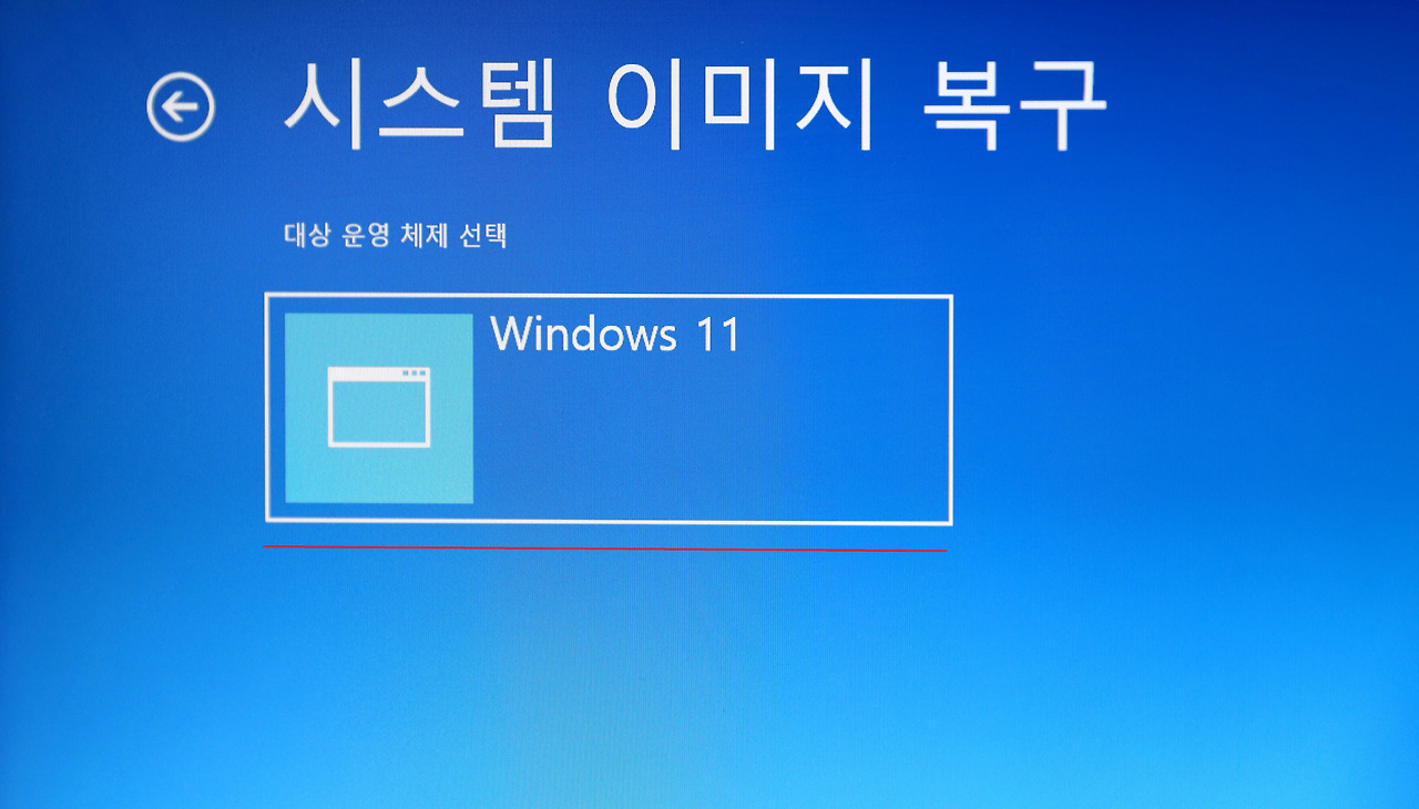 Win 11에서 만든 복구이미지로 부팅하면 요렇게 나오고, Win 10에서 만든 복구이미지로 부팅하면 Windows 10으로 나옵나다. 이 화면이 나오면 Win 10이든 Win 11든 그냥 선택하고 다음으로 진행하면 됩니다.
