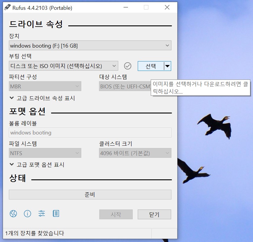 Rufus 4.4 Portable 사용해 간편하게 부팅 가능한 USB 드라이브 만들기 (자주 사용하는 프로그램이 아니라 포타블 버전을 사용 했습니다.)