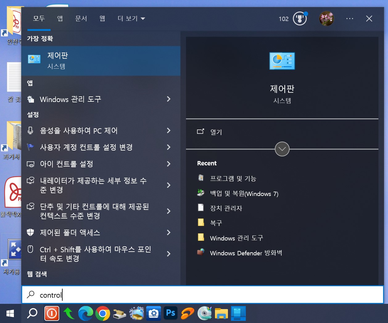 검색된 [ 제어판 ]선택